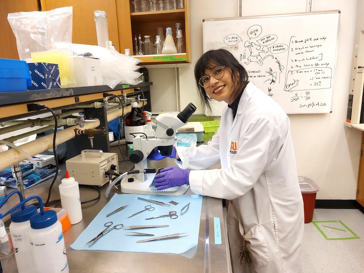 Caroline Hernández in the David Lab.