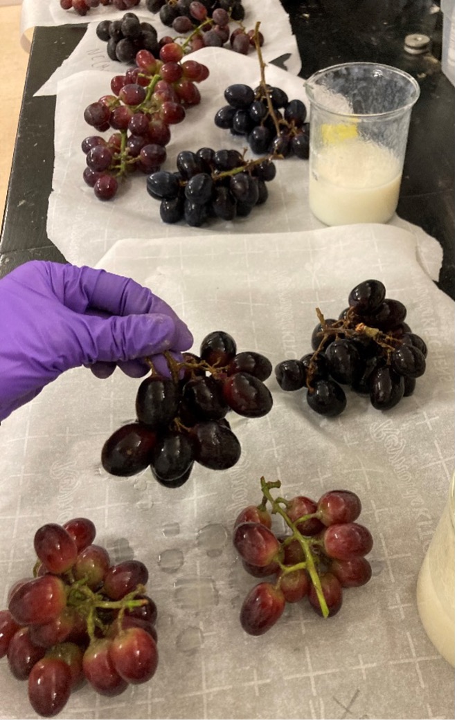 Figure 2. Experimenting with dipping table grapes in different coating formulations.